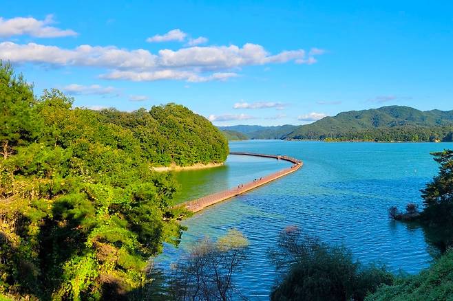 또한, 선성수상길 근처에는 ‘안동호 수상레저마린’이 있어서 바나나보트, 수상스키 등 다양한 수상 액티비티를 즐길 수 있습니다. 특히, 중간 데크길에 위치한 황토색 피아노 조형물은 아름다운 추억의 사진을 남길 수 있는 포토존으로 꼭 예쁜 사진 찍어가시길 바랍니다.