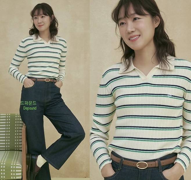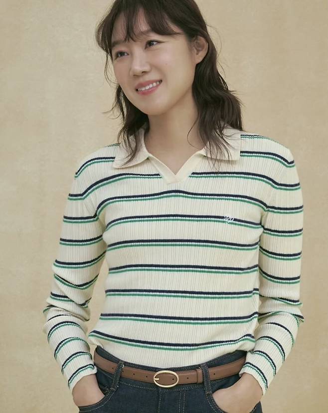 배우 공효진이 스트라이프 골지 티셔츠 여친룩으로 친근 수수미를 발산했다.