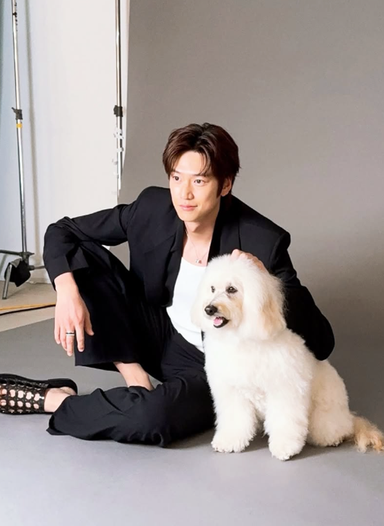 촬영 현장에서 나인우는 블랙 테일러드 재킷과 와이드 핏 팬츠를 매치해 깔끔하고 시크한 분위기를 연출했다.