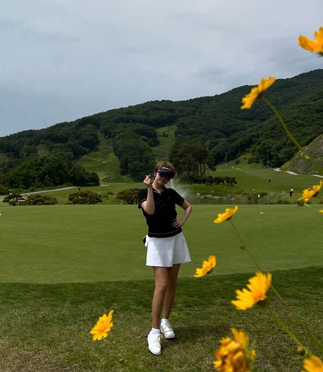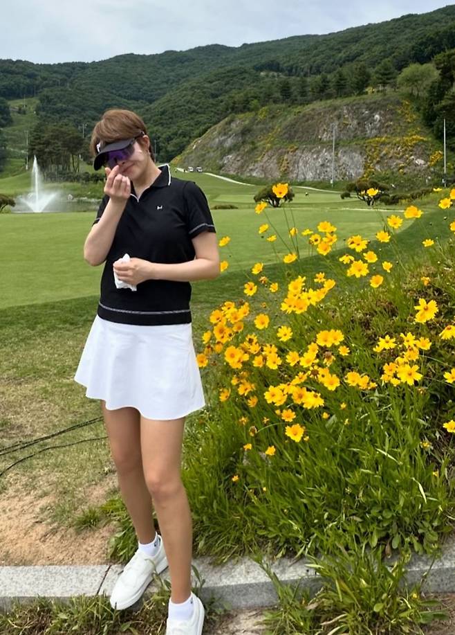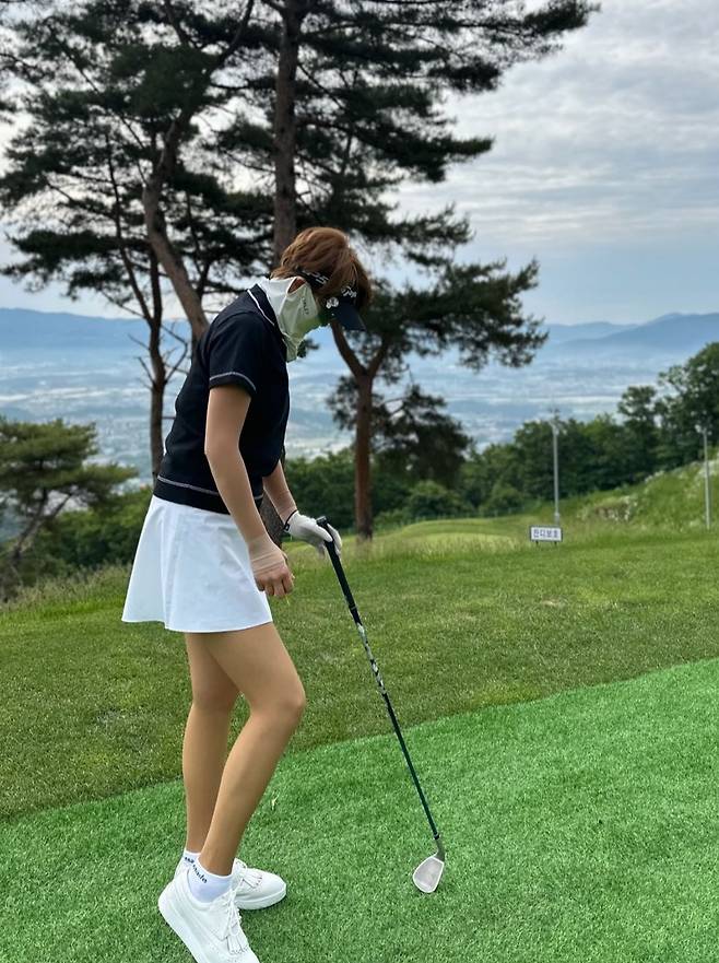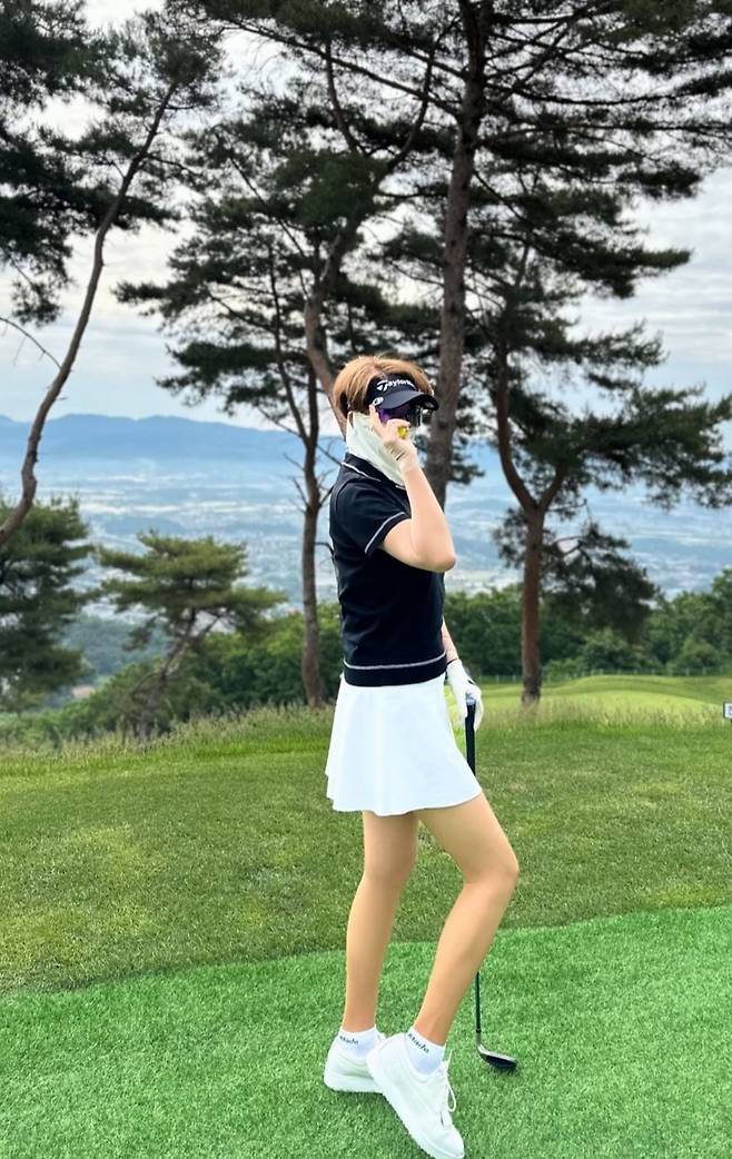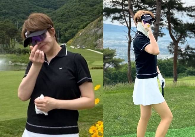 배우 김선아가 숏컷 헤어스타일에 썬바이저를 쓰고 세련된 골프 웨어를 선보여 이목을 끌었습니다.