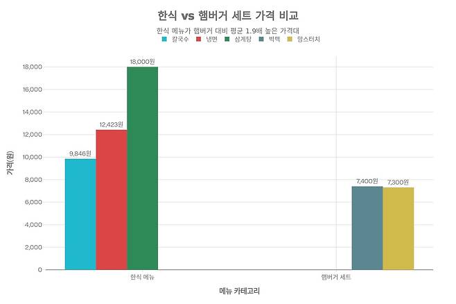 지난 1년 동안 서울 지역의 냉면, 칼국수, 삼계탕 등 한국 전통 외식 메뉴의 가격이 급등하면서, 상대적으로 저렴한 햄버거 세트가 새로운 '서민 점심'으로 부상했다. 이는 고물가와 고환율이 겹치면서 서민 음식으로 불리던 메뉴들의 가성비가 역전되는 현상을 초래했다.