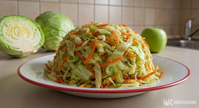 - 양배추 200g, 당근 1개, 엑스트라버진 올리브유 1큰술, 멸치 액젓 1큰술, 들기름 1큰술, 들깻가루 2큰술
