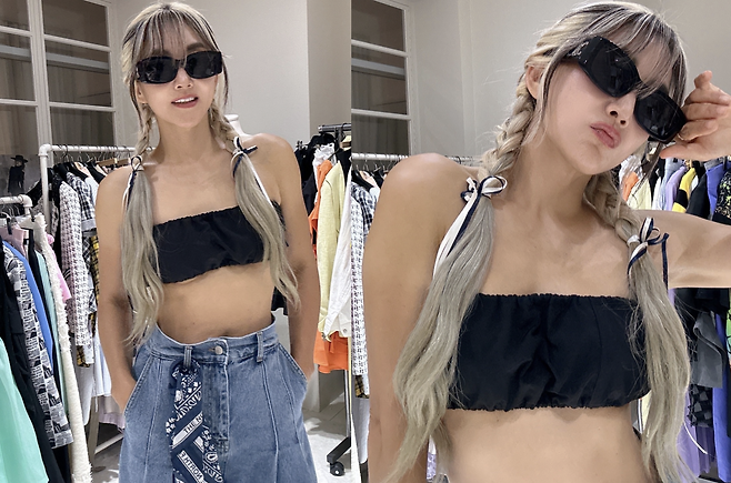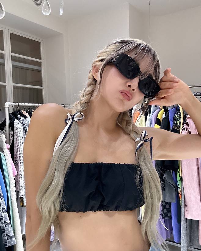 또한 바다는 땋은 양갈래 헤어스타일로 동안 미모를 뽐내고 있습니다.