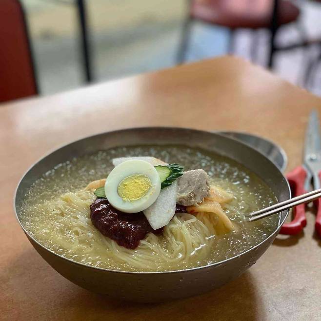 간판 대신 오래된 현수막이 걸려있는 게 전부지만 끊임없이 손님이 들어오는 것으로 유명한 연산동 '북청밀면'. 40년이 넘은 노포로 처음과 변하지 않은 맛으로 단골손님이 많기로 유명하다. 미리 비벼져 나오는 비빔밀면이 특히 인기로 수육, 오이, 배, 계란 반쪽이 고명으로 곁들여져 나오고 새콤하면서 아주 살짝 매콤해 중독성이 넘치는 맛이다. 살얼음이 가득 들어간 물면 또한 시원한 육수와 탱탱한 면발, 양념장이 완벽한 맛의 비율을 자랑한다. 군더더기 없는 깔끔한 맛으로 뒤돌아서면 생각나는 집이다.