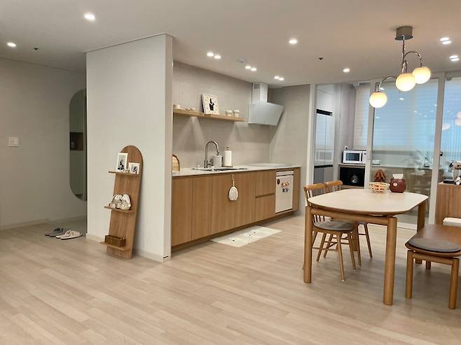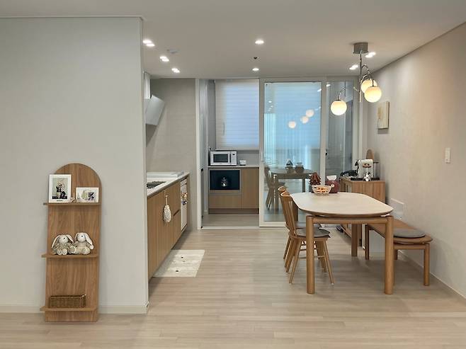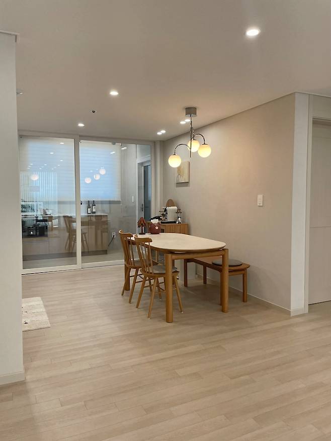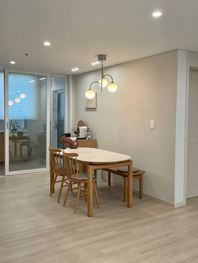 요리하는 곳 바로 맞은편에는 다이닝 공간이 있어요.