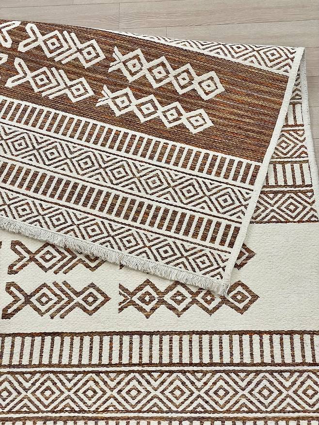 러그는 강릉 여행 중에 소품 샵에서 샀던 제품인데요. 색 조합과 짜임이 너무 이뻐서 데려왔어요. 양면으로 두 가지 색을 사용할 수 있어요.