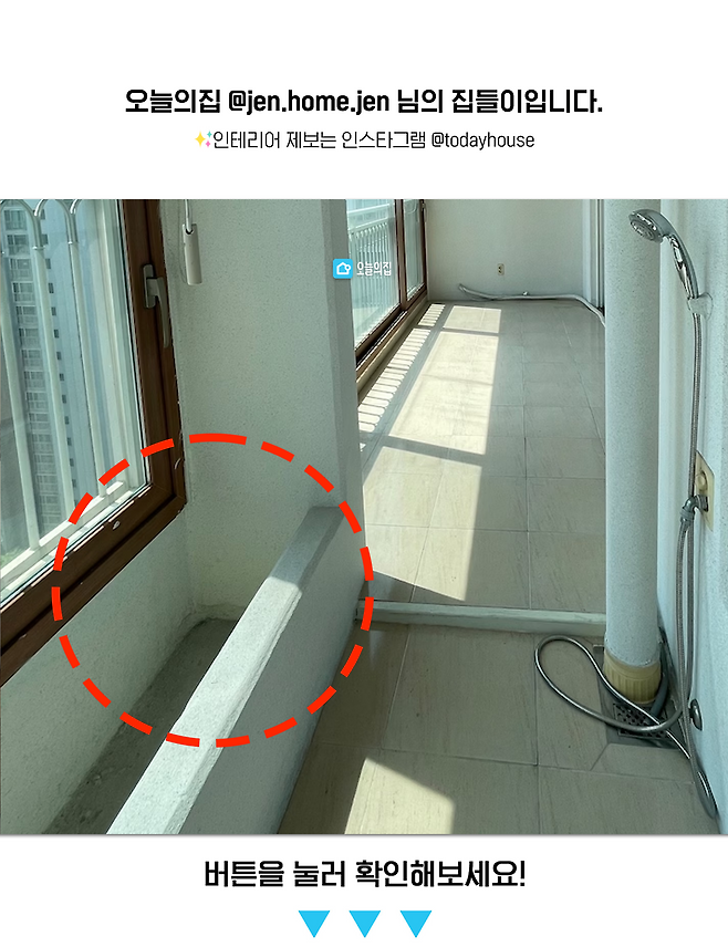 혹시 Before 사진에 누런 수도꼭지 발견하셨나요? 베란다는 최소한의 리모델링만 했다 보니 가리고 싶은 부분이 있었어요. 너무 보기 싫은 수도꼭지가 있었죠. 종종 수도꼭지를 사용해서 없앨 수는 없어서 시선 차단용으로 가려주었습니다.