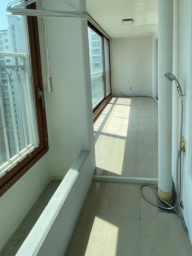리모델링 전에 베란다의 상태는 나쁘지 않아서 부분 리모델링을 진행했어요. 이전 집주인분이 베란다에 최근에 탄성 작업을 하셨었고 바닥 타일도 나름 깨끗했어요.