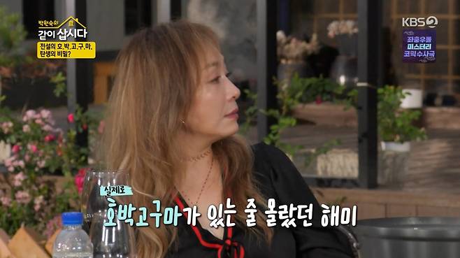 19일 오후 방송된 KBS2 '박원숙의 같이 삽시다'에서는 배우 박해미가 '호박고구마' 에피소드에 대해 이야기했다.