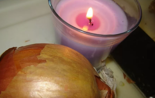 초에 불을 키고 양파를 자르기전 도마 주변에 최대한 가까이 둡니다. 이렇게 하면 양파를 썰때 방출되는 가스가 초의 화염속으로 빨려 들어갑니다. 이 방법은 눈물이 흐르는것을 막을수 있을뿐더러 주방에 좋은냄새를 나게하는데에도 도움이 됩니다.