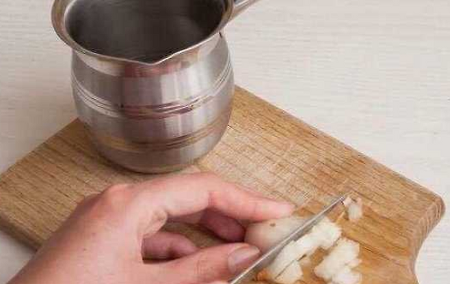 6. 증기나 뜨거운물을 옆에두고 양파를 자른다.