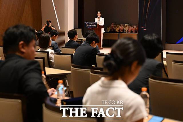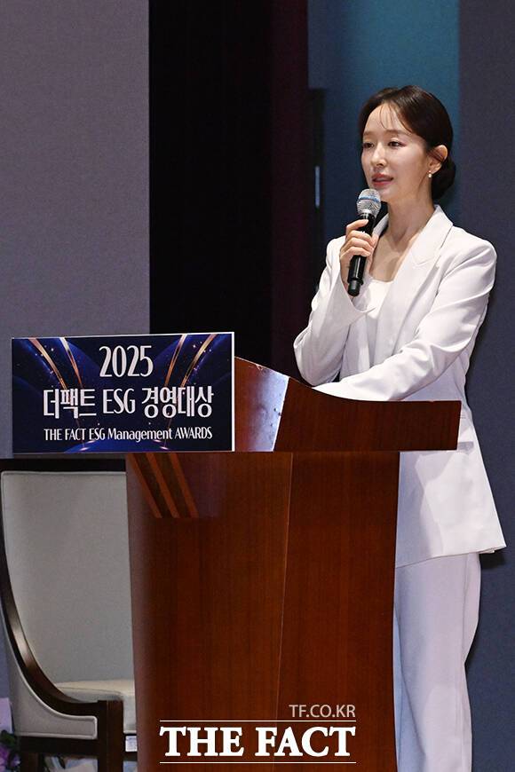 특종에 강한 신개념 대중 종합지 <더팩트> 가 주최하는 '2025 ESG 경영대상' 시상식이 26일 오후 서울 영등포구 여의도 한국거래소(KRX) 컨퍼런스홀에서 열려 박선영 아나운서가 사회를 보고 있다. 더팩트>