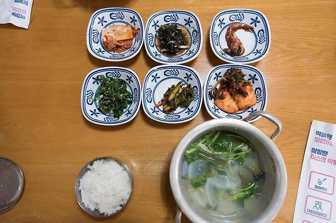 소박한 골목 길가에 자리 잡은 음식점. 주방이 훤히 들여다보이는 공간에서 노부부가 운영하는 단출한 식당이지만 맛의 깊이가 있다. 졸복국과 멍게비빔밥이 특히 유명한데 겨울이면 물메기탕과 생대구탕을 한정 메뉴로 선보인다. 생대구탕은 시원한 맛의 기본 육수에 쫄깃한 대구를 넣어 끓여내 대구 특유의 녹진한 생선기름맛이 배어있다. 반찬도 그때그때 달라지는 여섯 가지 찬으로 정성이 담긴 한 끼를 맛볼 수 있다.