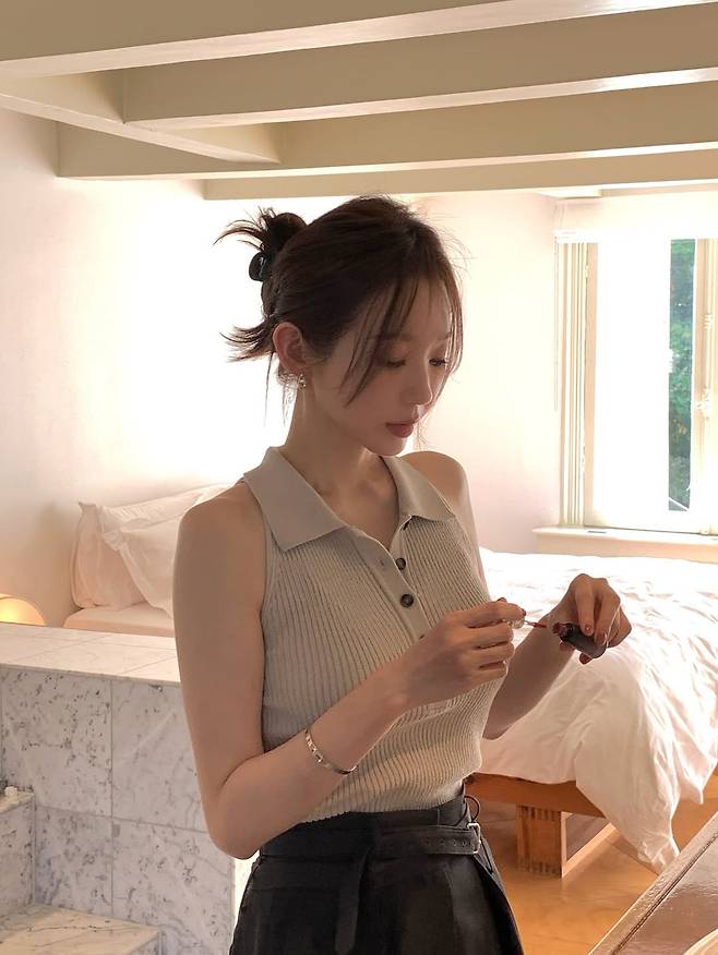 최근 강민경은 자신의 소셜미디어를 통해 아침의 한때를 담은 사진 여러 장을 공개했습니다.