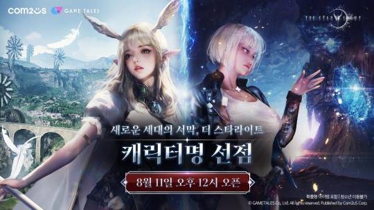 컴투스(대표 남재관)는 게임테일즈(대표 정성환)가 개발하고 자사가 퍼블리싱하는 신작 MMORPG ‘더 스타라이트’의 사전 캐릭터명 선점 이벤트를 오는 8월 11일 오후 12시부터 실시한다고 밝혔다.