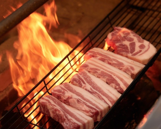 이후 참숯으로 마저 구워 겉은 바삭하고 속은 육즙 가득한 고기 본연의 맛을 즐길 수 있죠.