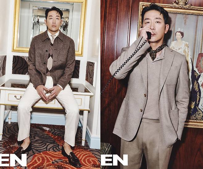 또 다른 화보에서는 깔끔하게 떨어지는 켄트 핸드-테일러드 헤링본 슈트 셋업과 플레드 캐시미어 크루넥 스웨터를 착용해 고품격 비주얼을 자랑하며 화보 장인의 면모를 여과 없이 드러냈습니다.