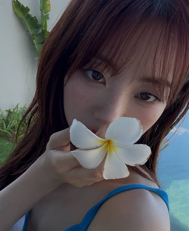 꽃을 얼굴 가까이 들고 찍은 컷에서는 순수함과 여성스러움이 동시에 느껴져, 뷰티 화보 같은 분위기를 자아냈어요.