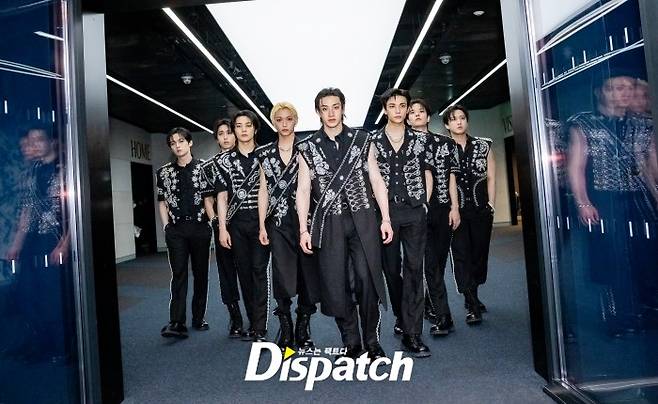 ‘디스패치’가 라커룸에서 스트레이 키즈를 만났다. 멤버들은 제복을 입고 라커룸에 들어섰다. 자신들의 유니폼이 걸려있는 모습을 보고 흥분을 감추지 못했다.