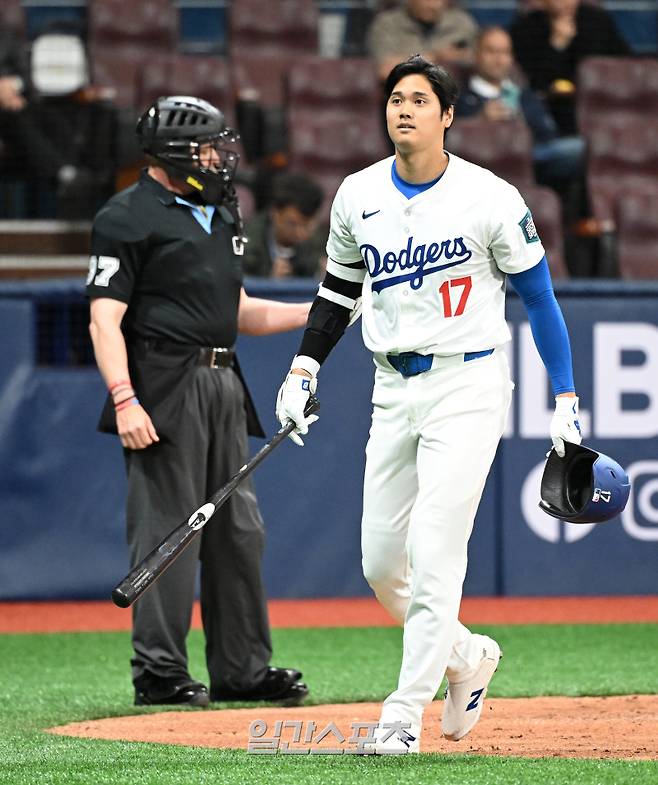 17일 서울 고척스카이돔에서 ‘메이저리그 월드투어 서울 시리즈 2024’ LA 다저스와 키움 히어로즈의 연습경기가 진행됐다.2회초 1사 1,3루에서 LA 다저스 오타니 쇼헤이가 헛스윙 삼진으로 물러나고 있다. 고척돔=정시종 기자 capa@edaily.co.kr /2024.03.17.