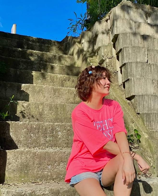짧은 웨이브 헤어에 귀여운 컬러 헤어핀을 더해 소녀스러운 포인트를 주었으며, 네일과 액세서리도 핑크 계열로 통일감을 유지해 디테일의 완성도를 높였습니다.