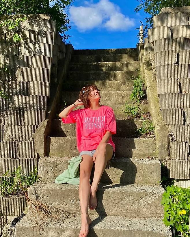 맨발로 연출된 자연스러운 포즈는 편안함과 친근한 분위기를 더했습니다.