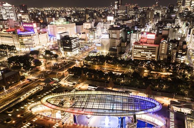 과학관에서 도보 10분 거리. 하지만 분위기는 완전히 달라진다. 오아시스 21은 지상 14미터 높이에 떠 있는 유리 구조물 ‘스페이스십 아쿠아’로 유명하다.