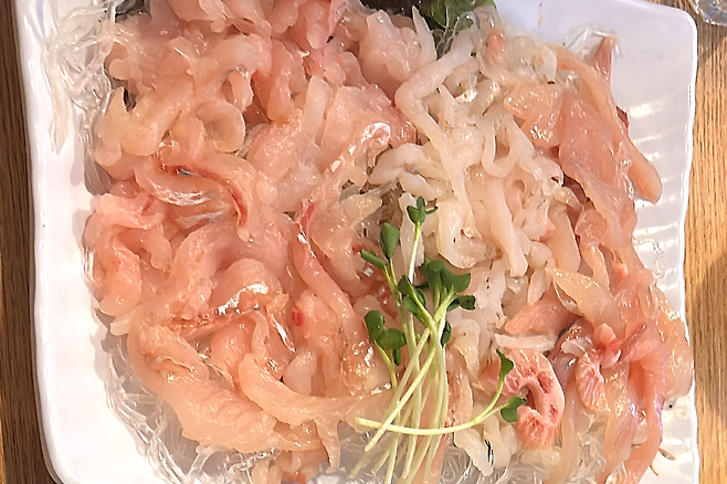 광어·숭어·도다리 외에도 활고등어회 같은 희귀 메뉴가 있어 미식가들 사이에서 인기가 높다. 특히 노을이 비치는 루프탑에서는 와인과 함께 숙성회를 즐기는 커플들이 많다.