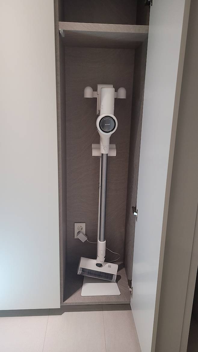 오른쪽 끝에는 무선 청소기장으로 미리 계획하여 콘센트를 매입하여 깔끔하게 숨길 수 있었습니다.