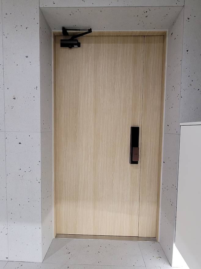 그래서 우드 필름으로 했는데 아주 만족합니다.^^ 도어락은 삼성 DP951 모델인데 을지로 철물점에서 택배로 최저가 공수하였고 도어 스토퍼는 초코색으로 주문해 깔 맞춤하여 신랑이 설치했는데 너무 예뻐요.