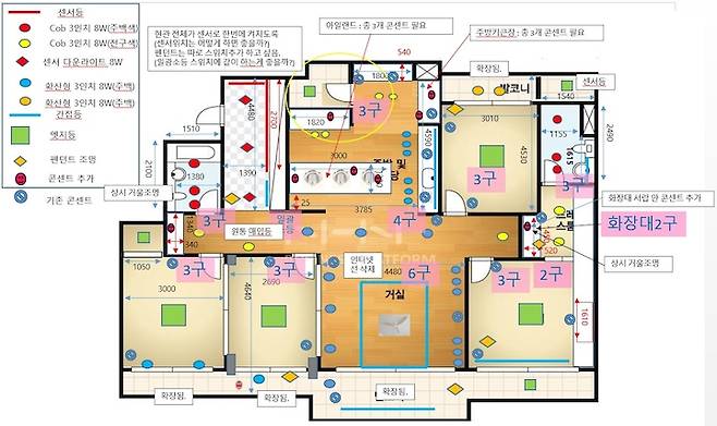 도면이 어지럽죠?ㅎ 변수들도 많고 진행하며 너무 화이트인가?싶어 여러색감으로 어지러워질 뻔한 컨셉도 다행히 원래 계획한 대로 진행되어서 정말 다행이었습니다. 철거,전기, 목공, 시스템 에어컨, 마루, 도배, 가구, 중문, 욕실 등 인테리어를 진행하였는데 정말 하나하나 진행되며 완성되어가는 집을 보면서 너무 신기하고 재미있었습니다.