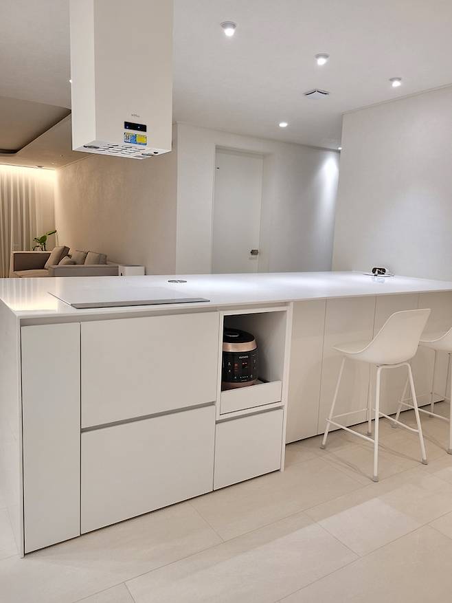 집 꾸미기나 인테리어 감각이 뛰어난 편이 아닌 저는 화이트 인테리어를 기반으로 깔끔하고 주방 공간에 힘을 주는 컨셉으로 진행하게 되었습니다. 저희가 원하는 자재로 원하는 레이아웃으로 진행을 위해서는 평수가 크기 때문에 인테리어 업체 견적 요청시 너무나 큰 금액이 필요했습니다.