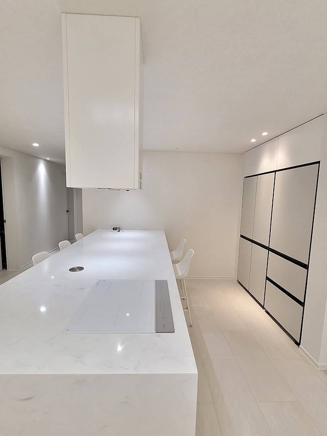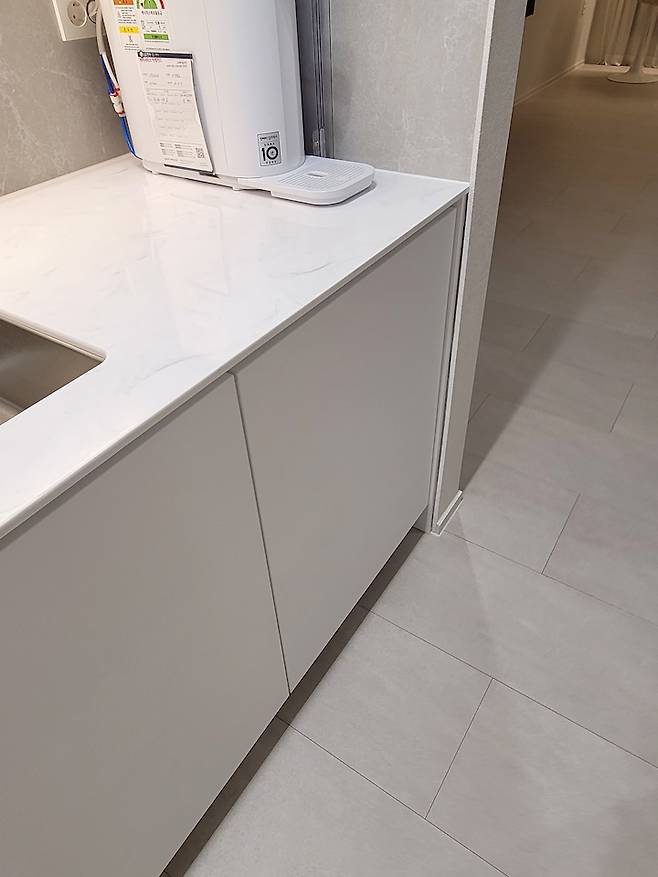 아일랜드 상판과 옆면은 LX 하이막스 오로라 블랑 인조 대리석으로 선택하였는데 너무 고급스럽고 맘에 들어요. 솔직히 상판에 큰비용이 들어갔지만 투자한 만큼 너무 이쁜것 같아요.