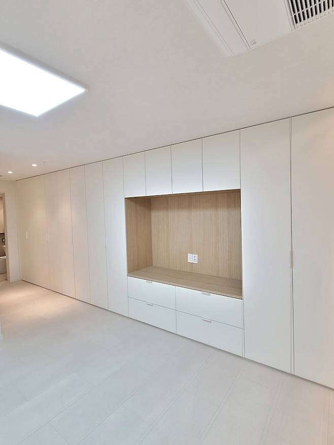 그리고 인테리어할 때 시스템 에어컨을 넣으니 확실히 더욱 거실이 환하고 깔끔한 것 같아요. 할지 말지 고민했던 건데 선택하길 잘한 거 같습니다. 아이들이 초등학생 4학년,예비1학년인데 각자 방을 만들어주기로 결정하였는데 시스템에어컨이 필요할 것 같아 선택하였는데 큰 예산이 들었지만 만족합니다. 여름이 되면 더욱 만족감이 커지겠죠?ㅎ