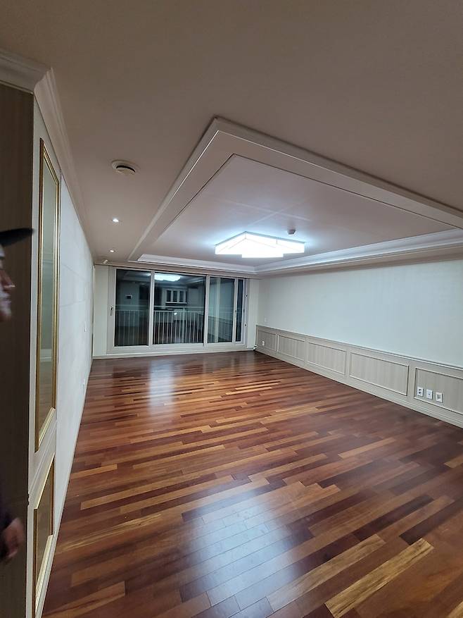 46평에 확장되어 거실 사이즈가 큽니다. 마루는 원목 마루라 좋은 거긴 하지만 싹 탈바꿈을 위해 다 교체 하였습니다. 깔끔하게 하자고는 했지만 너무 밋밋하지는 않아야 할 것 같아 레퍼런스를 참 많이 찾아봤습니다.