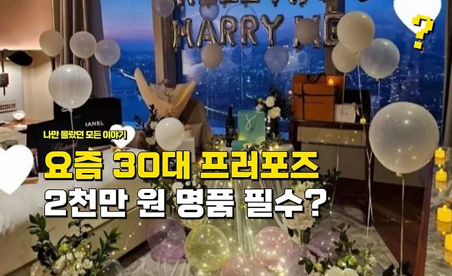 명품 반지, 가방, 호텔 대여 비용 등을 모두 포함하면 프러포즈 준비에 드는 비용이 천만 원에서 2천만 원에 달합니다. 😱
