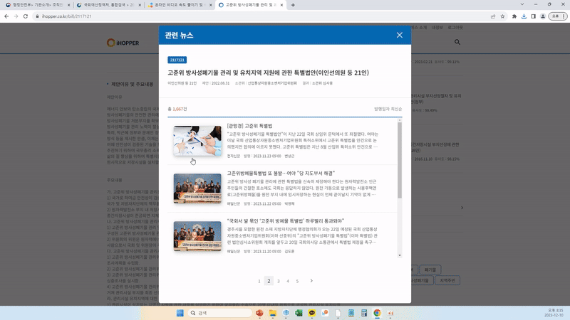 법령·조례·규제·정책보고서 등 공공데이터를 수집했다. 법안 수는 약 7만건, 각 법안의 영향을 주는 요인(인물·법안·환경) 데이터는 약 680만건에 달한다. “데이터를 단순히 수집하기만 하면 활용도가 떨어집니다. 수집한 모든 데이터를 유기적으로 연결했어요. 가령 법령 하나를 클릭하면 관련 인물·정책보고서·개정안 등을 한꺼번에 확인할 수 있도록 하는 작업이죠. 특정 이슈에 대응할 때 주목해야 하는 인물과 그 인물이 주장하는 바를 쉽게 파악해 대응할 수 있습니다.”