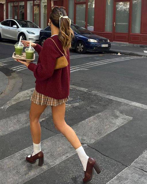 여기에 니트는 센스있게 레드 컬러로 포인트~