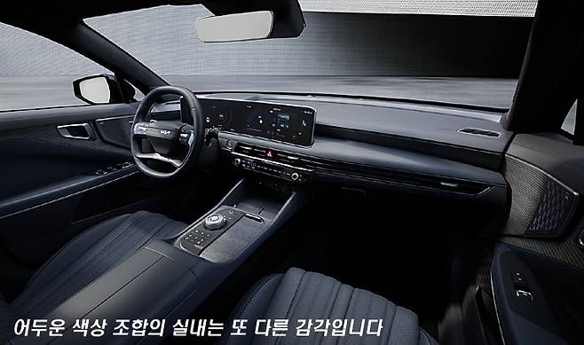 실내의 색상 조합도 크러시 패드 상부를 어두운 톤으로 설정하고 트림 부분을 더 밝은 색으로 대비시켜서 경쾌함과 고급감을 강조했습니다. 두 색채 간의 대비를 높여서 마치 0과 1을 의미하는 흑백 톤의 디지털 이미지에 가깝게 조금 더 디지털적 감성에 가까운 선명한 대비의 조합을 의도한 인상입니다. 물론 어두운 톤으로만 이루어진 조합도 있는데요, 장중한 느낌을 주면서 또 다른 분위기를 보여줍니다.