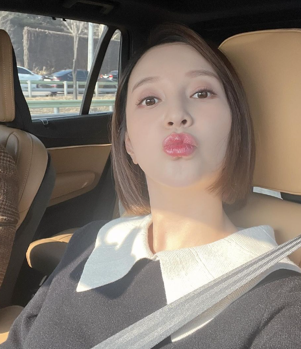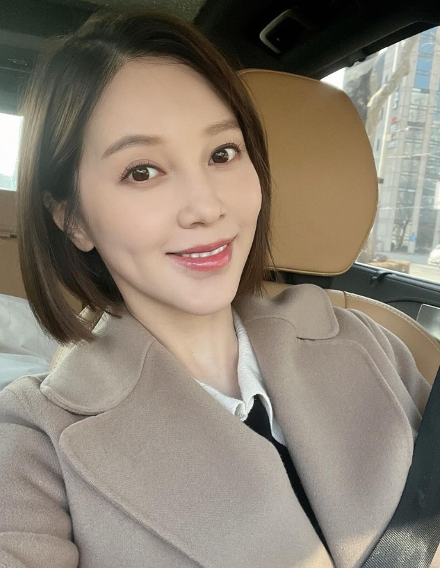 아유미는 단발 헤어 스타일링으로 단정한 느낌을 주는 외출복 스타일링을 선보였다.