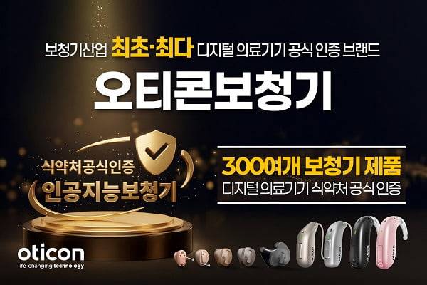 덴마크 보청기 브랜드 오티콘은 지난해 4월 식품의약품안전처 '디지털 의료기기' 인증을 획득했다.