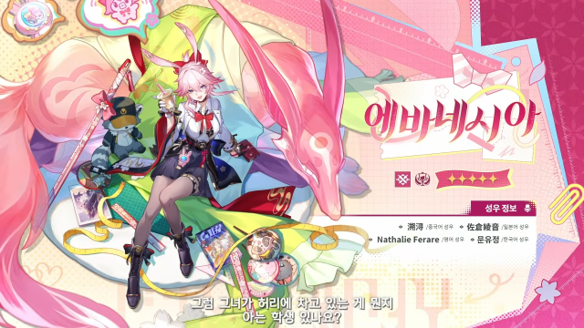 이 외에도 '붕괴: 스타레일'의 주인공인 개척자의 번개 / 환락 버전이 공개되는 한편 반디와 카스토리스, 달리아 등의 캐릭터가 복각된다.