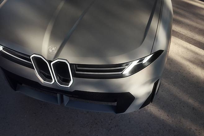 BMW 전동화 SUV의 키드니 그릴이 확 줄어든다. 세로 형태로 중앙으로 집중시키면서 수평형 라인이 강조된다. 내년부터 출시될 BMW 새 얼굴 '비전 노이어 클라쎄 X'(Vision Neue Klasse X)다.