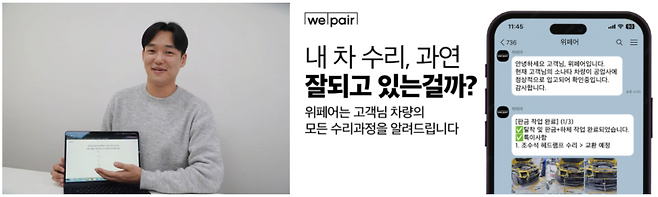 “사고 차주를 찾는 과정과 이 분들에게 신뢰를 얻는 게 쉽지 않았습니다. 사고는 언제 어디서 일어날지 모릅니다. 사고를 경험한 이들에게 신뢰를 얻는 것도 만만치 않죠. 깜깜이 수리다, 불투명하다는 등 자동차 수리 시장에 대한 부정적인 인식이 만연하거든요. 장인 정신을 바탕으로 책임감 있게 수리하는 기술자들과 함께하고, 위페어는 전문가로서 모든 과정을 책임진다는 걸 강조하고 있습니다.”