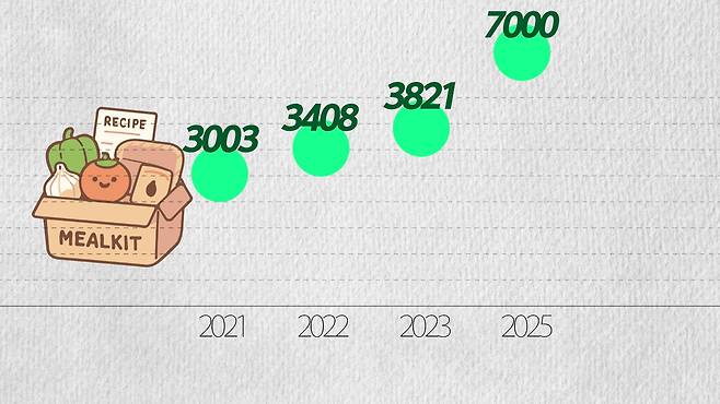 취재하다가 알게된건데, 실제 밀키트 시장 규모는 성장세가 더디다고 한다. 당초 글로벌 시장조사기관 유로모니터는 올해 국내 밀키트 시장 규모가 7000억원대에 이를 것으로 전망했다. 하지만 국내 밀키트 시장은 2023년 3800억원대 수준에 그쳤다. 이게 가장 최근 통계다.