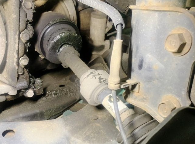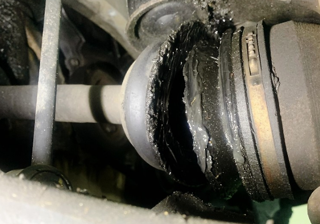 찢어지면서 고무부츠 안에 있던 그리스가 흘러나오게 됩니다.
