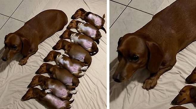엄마 닥스훈트는 살짝 멍한 표정으로