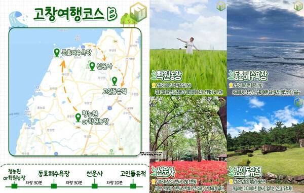 아래 코스 중 취향에 맞는 코스를 선택해 보다 알차게 고창 여행을 즐기시길 바랍니다 :)