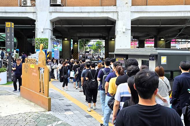 긴 에스컬레이터 줄... 경찰·구청 나서 교통정리까지