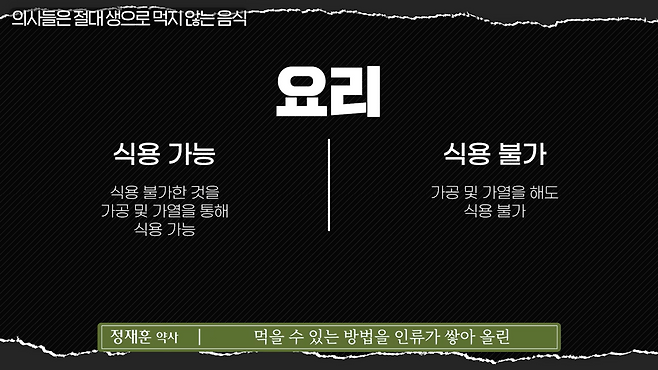 결국 우리가 말하는 요리라는 건 먹을 수 있는 것과 없는 것을 구별하고, 독성을 제거해 인류가 안전하게 섭취할 수 있도록 발전시킨 것이므로 식재료에 대한 주의가 요구된다.